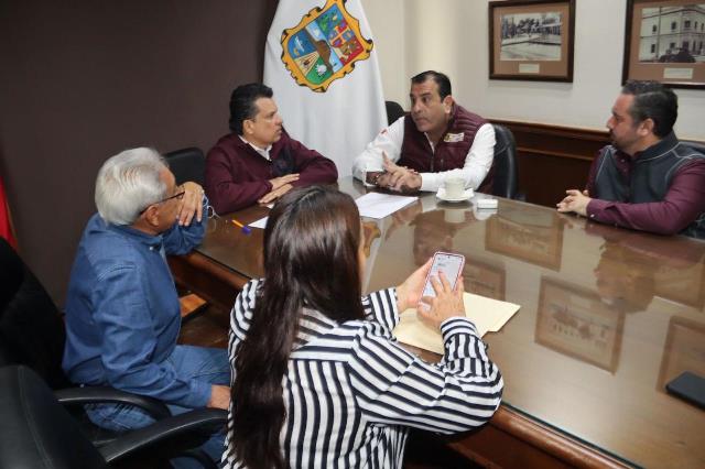 En reunión con los secretarios de Obras Públicas, Eusebio Alfaro Reyna, del Ayuntamiento, Hugo Reséndez Silva, y coordinador de Plan de Bacheo, Jorge Bello Méndez, encabezó la revisión de la propuesta de acciones que presentará a la comisión del Cabildo local.