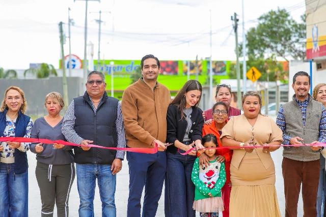 Reynosa, Tam.- En la calle Niquel, de la colonia Villas de Esmeralda, los vecinos recibieron con mucho júbilo al Alcalde Carlos Peña Ortiz, él y su esposa la Presidenta del Voluntariado DIF-Reynosa, Alejandra Yelitza Garza, acudieron a inaugurar la nueva pavimentación hidráulica junto con las familias del sector.