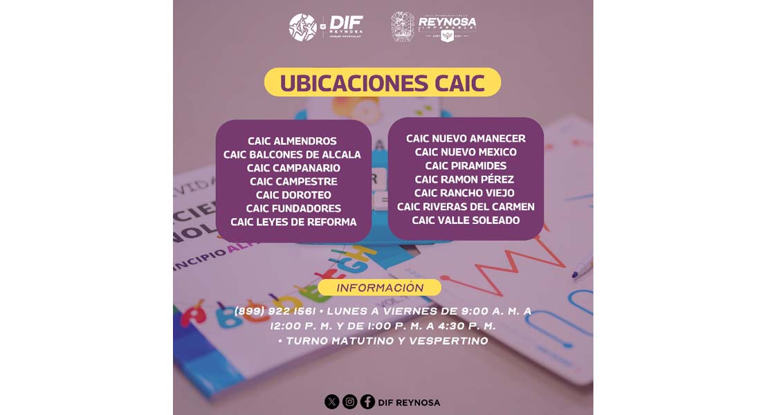Los CAIC se encuentran distribuidos en colonias como Almendros, Balcones de Alcalá, Campanario, Campestre, Doroteo, Fundadores, Leyes de Reforma, Nuevo Amanecer, Nuevo México, Pirámides, Ramón Pérez, Rancho Viejo, Riveras del Carmen y Valle Soleado, brindando atención en turnos matutino y vespertino.