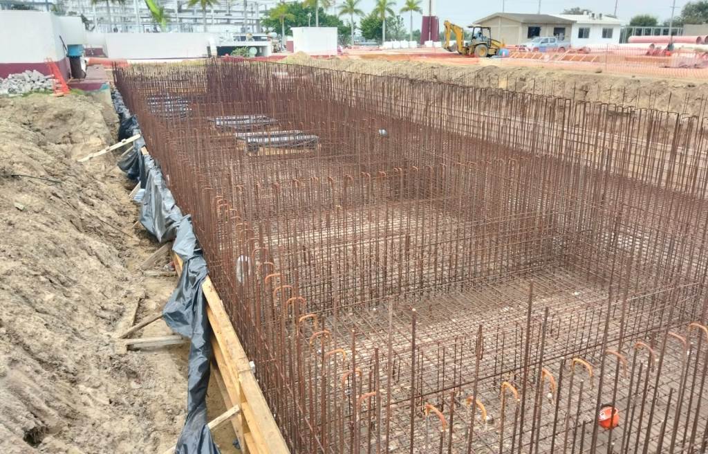 Subrayó que, en la construcción del tanque de regularización, llevan a cabo el colado de base y el armado de acero para los muros, mientras que, en la ampliación de la planta, construyen 8 tanques de filtración, además de la instalación de tuberías de polietileno reforzado con fibra de vidrio de distintos diámetros y válvulas de control.