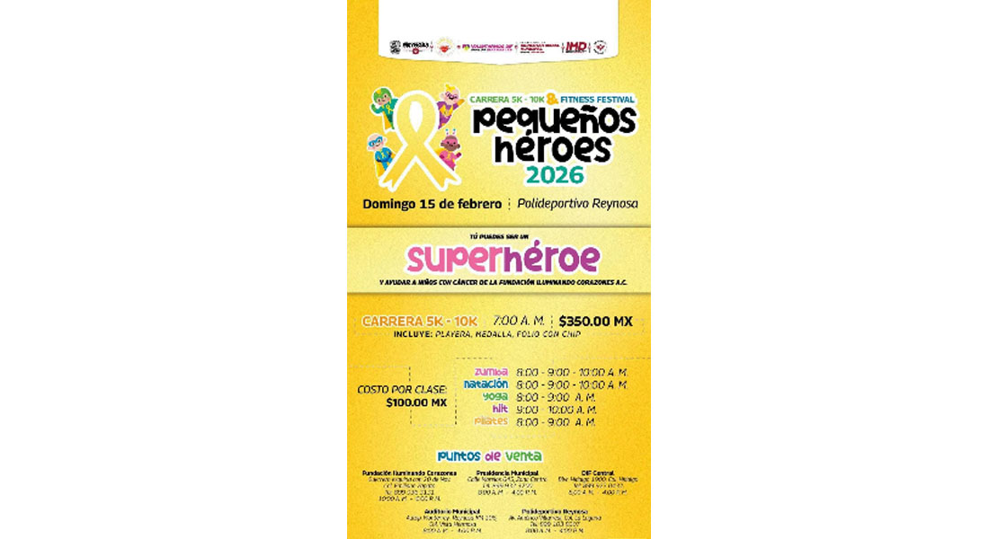 Reynosa, Tam.- La carrera Pequeños Héroes, Fitness Festival 5K y 10K 2026, refleja el corazón solidario de los reynosenses que participarán en el evento del próximo 15 de febrero en apoyo a los niños que están luchando contra el cáncer.