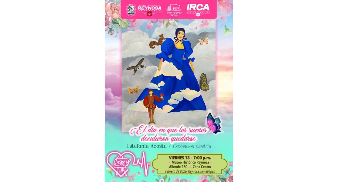 Reynosa, Tam.- El Gobierno de Reynosa, que preside el Alcalde Carlos Peña Ortiz, invita a la inauguración de la exposición pictórica “El día en que los sueños decidieron quedarse”, de la artista Estefanía Acosta Franco, este próximo viernes 13 de febrero a las 19:00 horas en el Museo Histórico Reynosa.