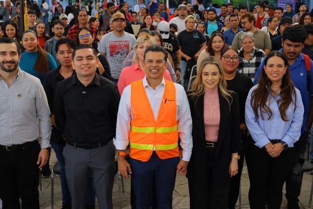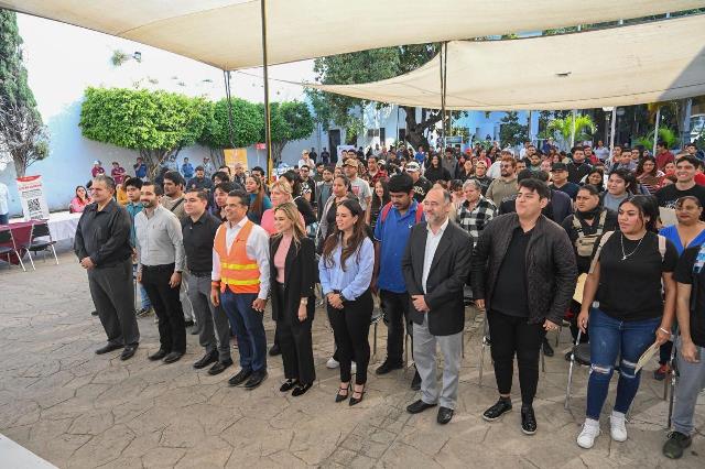 El alcalde Eduardo Gattás Báez, en compañía de su esposa Lucy de Gattás, y representante de la Cámara Nacional de Comercio local, presidió el evento protocolario en la explanada de la Presidencia Municipal, donde se instalaron módulos informativos para ocupación laboral.