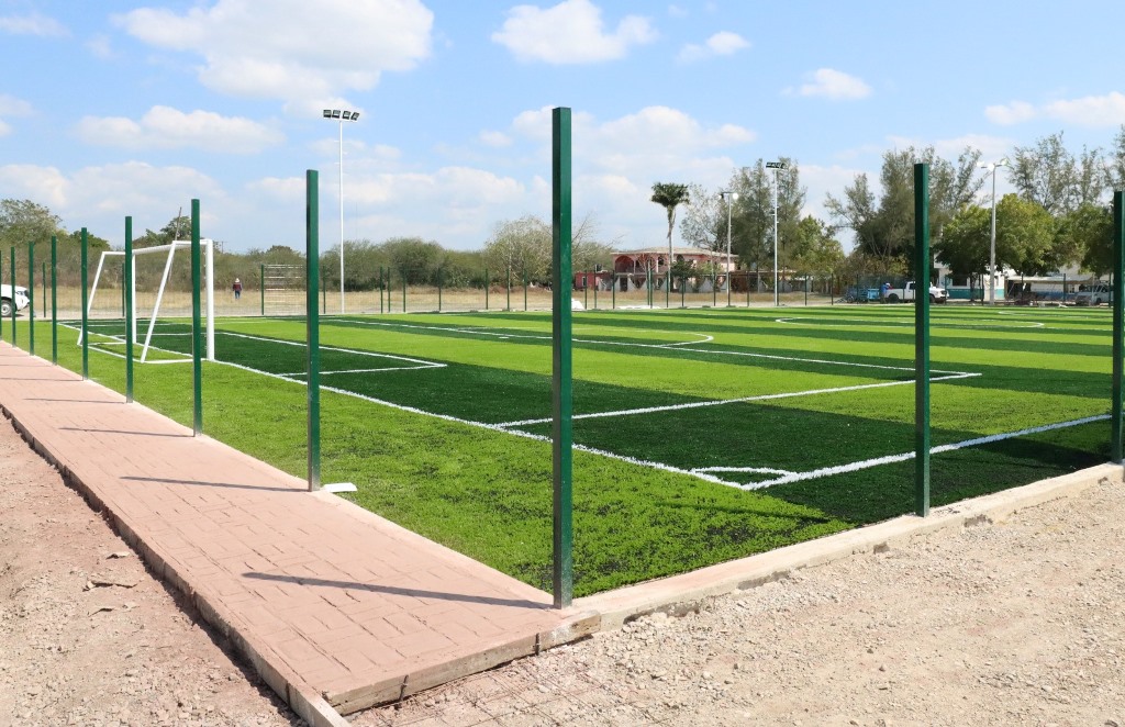 “Estamos trabajando en la instalación del pasto sintético, además de la colocación de luminarias para el campo y el espacio multideportivo, así como el armado de la estructura para las gradas”, refirió el titular de la dependencia estatal.