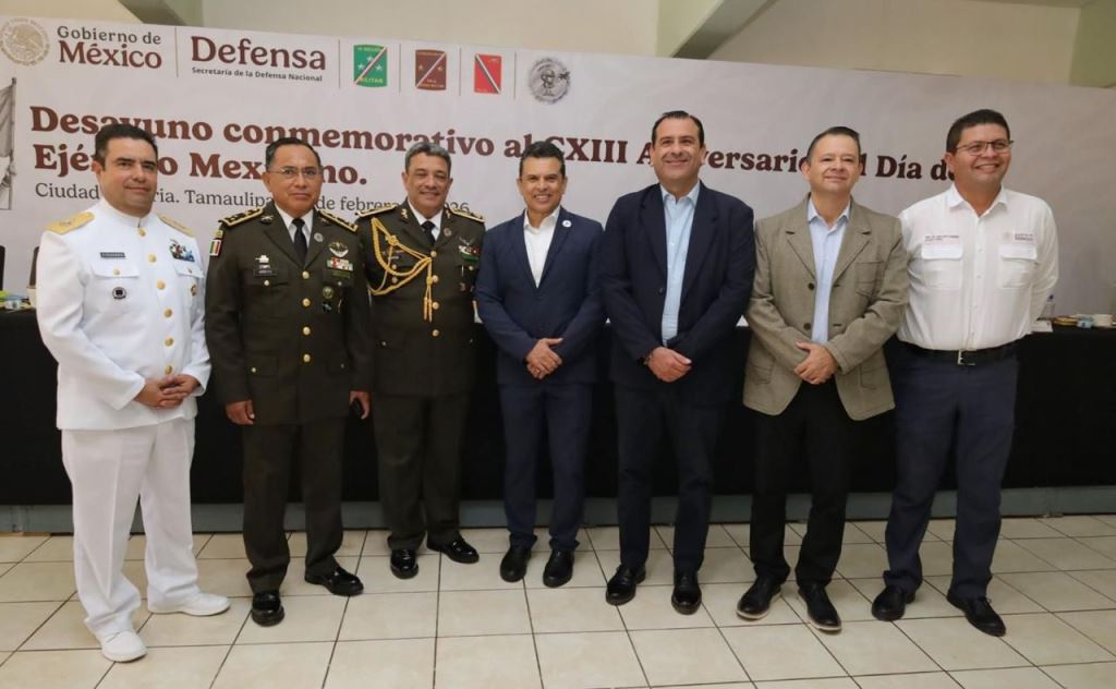 Cd. Victoria, Tam.- En el marco del CXIII Aniversario del Día del Ejército Mexicano, el presidente municipal de Victoria, Eduardo Gattás Báez, reconoció a la institución la labor de seguridad, bienestar y desarrollo que realiza por la Capital del Estado.
