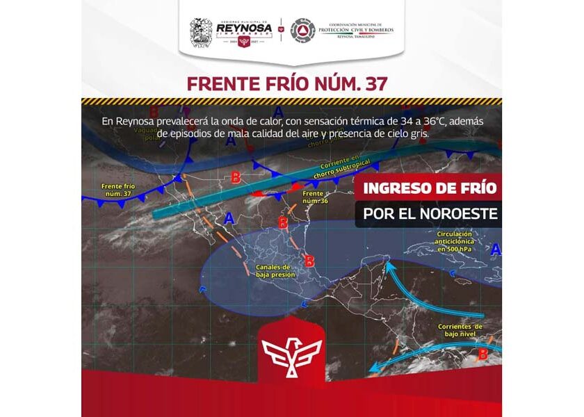 Reynosa, Tam.- El Gobierno Municipal de Reynosa informa que de acuerdo a datos manejados por organismos meteorológicos, el Frente Frío Número 37 traerá temperaturas entre 9° y 16° Grados Celsius a partir de este fin de semana. Temperaturas estimadas, en Centígrados:Sábado 21: Mín 13, 30 MaxDomingo 22: Mín 9, 22 MaxLunes 23: Mín 11, 24 MaxMartes 24: Mín 16, 27…