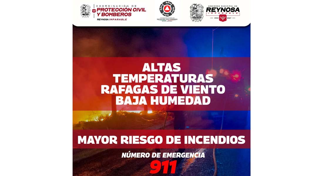 Reynosa, Tam.- El Presidente Municipal Carlos Peña Ortiz hace un llamado a la conciencia ciudadana, para que eviten encender fuego con cualquier motivo, así como tirar colillas de cigarro sin apagar, para evitar incendios que debido a las condiciones climáticas pueden ser difíciles de controlar.