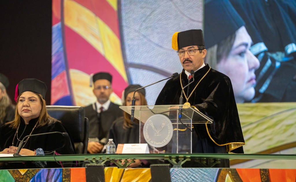 Durante su mensaje destacó que esta ceremonia es uno de los momentos más significativos para la vida institucional, al reconocer el esfuerzo, la perseverancia y el talento de la comunidad universitaria, subrayando que la grandeza de la UAT reside en su gente.