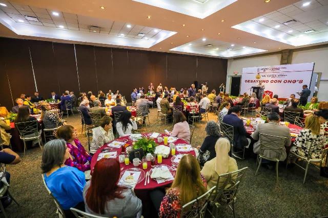 Reynosa, Tam.- El Alcalde de Reynosa, Carlos Peña Ortiz, en compañía de su esposa Alejandra Yelitza Garza, Presidenta del Voluntariado DIF-Reynosa; de la Senadora de la República, Maki Esther Ortiz Domínguez, y del Diputado Local Juan Carlos Zertuche Romero, se reunió en un desayuno con representantes de las Organizaciones No Gubernamentales de esta ciudad.