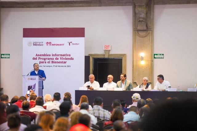 Reynosa, Tam.- El Gobernador Constitucional de Tamaulipas, Doctor Américo Villarreal Anaya; el Director General del INFONAVIT, Octavio Romero Oropeza, y el Alcalde de Reynosa, Carlos Peña Ortiz, presidieron la Asamblea Informativa del Programa de Vivienda para el Bienestar, donde se reconoció el apoyo al desarrollo de vivienda por parte de los mandatarios estatal y municipal.