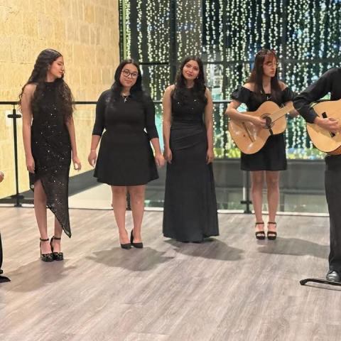 La Directora de Patrimonio Municipal, Alicia De Leon Peña, junto con la Directora del Instituto Reynosense para la Cultura y las Artes, IRCA, María Esther Camargo Félix, dio la bienvenida para que fuera la Rondalla del Instituto la que con sus magníficas interpretaciones iniciara la Noche de Museos, seguida por la Rondalla Romántica de la Sección 36 del Sindicato Petrolero.