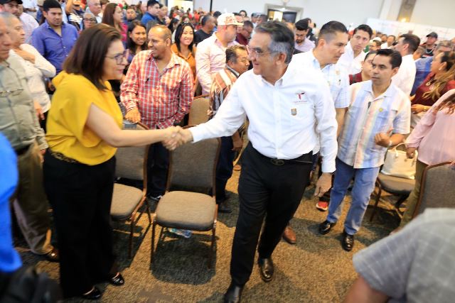 Durante el encuentro con dirigentes empresariales de INDEX, Fecanaco y Canacintra, representantes y delegados de 40 empresas maquiladoras y la dirigencia estatal de la CTM, el gobernador destacó que el programa que impulsa la presidenta Claudia Sheinbaum es el ejemplo del nuevo modelo de la transformación, con una visión de políticas públicas donde el quehacer del gobierno está centrado en la persona y en las oportunidades para su desarrollo y bienestar.