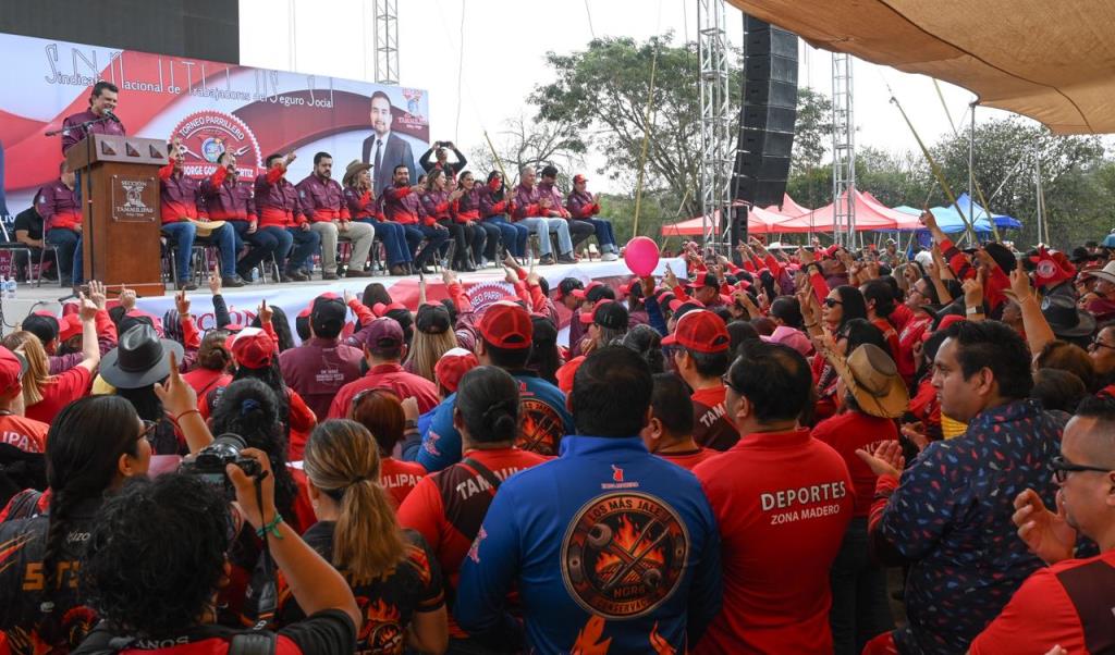 Cómo anfitrión, dió la bienvenida, junto a la Senadora de la República por Tamaulipas Olga Sosa Ruiz, Rómulo Pérez Sánchez, subsecretario de Enlace Legislativo, el Secretario de Salud en el Estado Vicente Hernández Navarro y presidentes municipales de Reynosa, Mante, Soto La Marina y Padilla, a más de 5 mil trabajadores del SNTSS de todo el Estado.