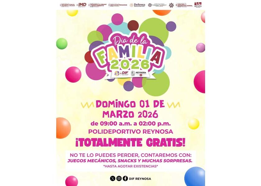 Reynosa, Tam.- “Ser mejores padres, mejores hijos y mejores ciudadanos nos permitirá construir un mejor país para todos. Juntos, en familia, podemos hacer la diferencia”, dijo hoy domingo 1 de marzo el Presidente Municipal Carlos Peña Ortiz acompañado por su esposa Alejandra Yelitza Garza. El Polideportivo Reynosa es el recinto donde se celebra el Día de la Familia, aún puede…