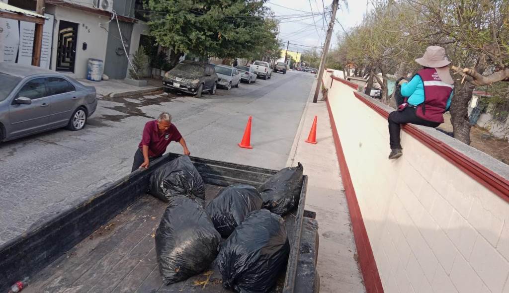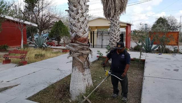 – Limpieza de basura y ramas en la escuela primaria General Lázaro Cárdenas, colonia Narciso Mendoza.