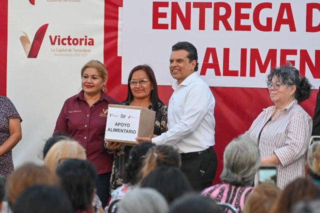“Tenemos claro que un gobierno cercano, es un gobierno que escucha, sensible, responsable y que actúa en beneficio de las familias victorenses” dijo en su mensaje Gattás Báez al hacer entrega de paquetes alimentarios con productos de la canasta básica.
