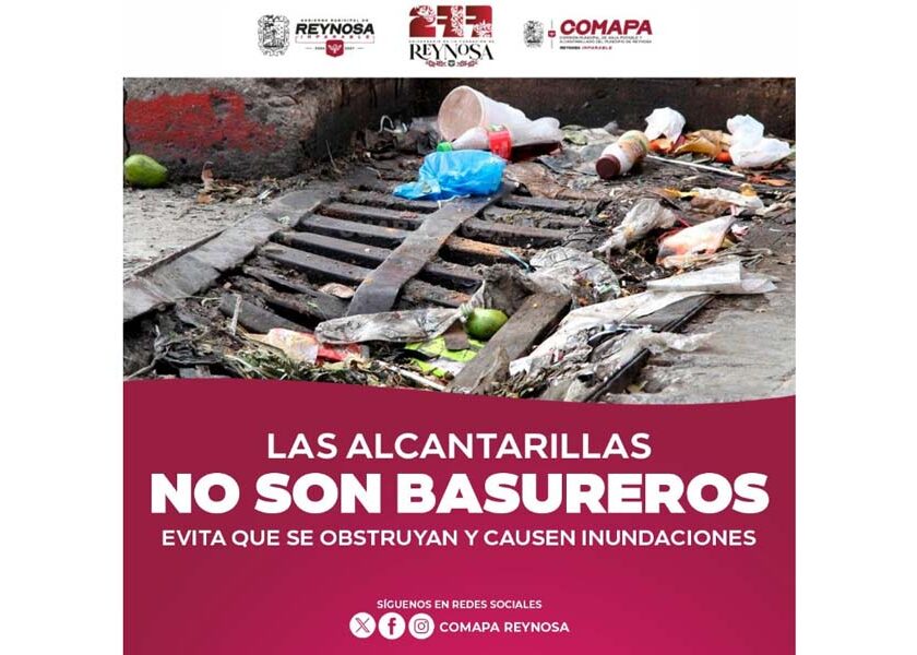 Reynosa, Tam.- La Comisión Municipal de Agua Potable y Alcantarillado de Reynosa hace un llamado a la ciudadanía a evitar arrojar basura, plásticos, grasas y otros desechos en la vía pública y en las alcantarillas. Estas prácticas provocan obstrucciones en la red de drenaje sanitario, lo que puede generar encharcamientos, fugas de aguas residuales e incluso inundaciones que afectan a…