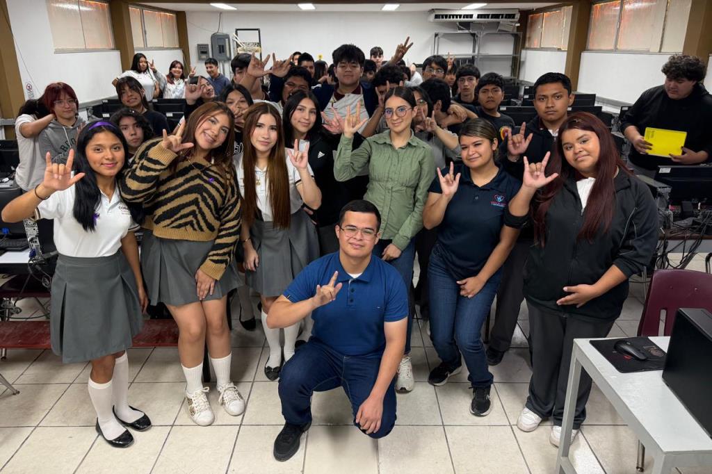 Reynosa, Tamaulipas.- Como parte de las políticas públicas y sociales en materia de inclusión, el Instituto de la Juventud de Tamaulipas (INJUVE) llevó a cabo el Taller de Lengua de Señas Mexicana en el Colegio de Bachilleres Plantel 07 de Reynosa (COBAT), con la participación de estudiantes, personal docente y de apoyo.