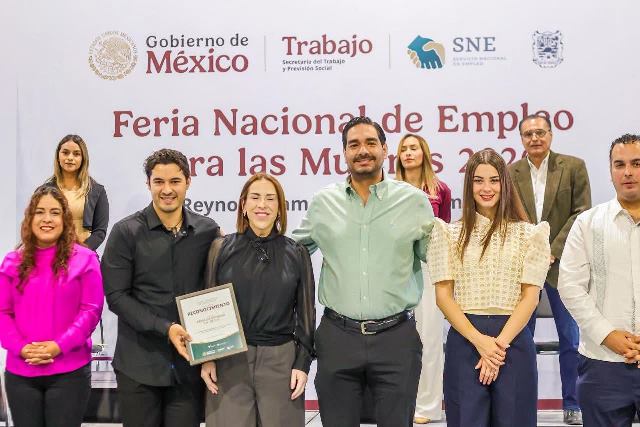 También participaron: Edith Vela Garza, Directora de Recursos Humanos de Erika de Reynosa; Sheyla Yaneth Matías Vargas, beneficiaria de la Feria Nacional de Empleo 2026, y los Diputados Locales, Humberto Armando Prieto Herrera, Gabriela Regalado Fuentes, Marco Antonio Gallegos Galván, Eva Araceli Reyes González y Armando Javier Zertuche Zuani.