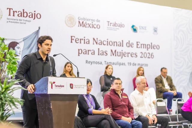 Reynosa, Tam.- El Presidente Municipal Carlos Peña Ortiz inauguró junto con el Secretario de Trabajo y Previsión Social de Tamaulipas, Luis Gerardo Illoldi Reyes, la Feria Nacional de Empleo para las Mujeres 2026, un evento en el que participaron los Alcaldes: de Camargo, Ernestina Perales Ortiz; de Miguel Alemán, Ramiro Cortés Barrera, y que busca conjuntar oportunidades para el desarrollo profesional y laboral de las mujeres de la región.