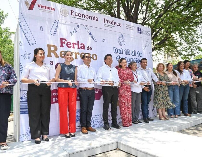 Cd. Victoria, Tam.- Con una amplia exhibición de mochilas, útiles escolares, uniformes, equipos de cómputo, calzado y lentes, dio inicio la Feria de Regreso a Clases 2025, que organiza en apoyo a la economía familiar de 122 mil alumnos el Gobierno de Victoria, CANACO local, gobierno del Estado y Federal. El presidente municipal Eduardo Gattás Báez, acompañado de su esposa…