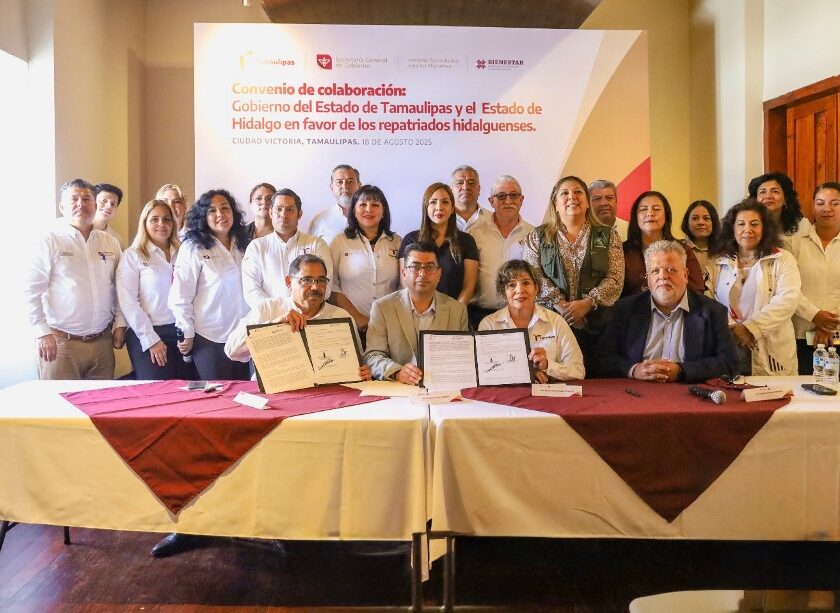 Ciudad Victoria, Tamaulipas.- Con el propósito de fortalecer las acciones en favor de las personas migrantes hidalguenses repatriadas por la frontera tamaulipeca, la Secretaría General de Gobierno, a través del Instituto Tamaulipeco para los Migrantes (ITM), firmó un convenio de colaboración con la Oficina de Atención a Migrantes del Estado de Hidalgo, adscrita a la Secretaría de Bienestar e Inclusión…