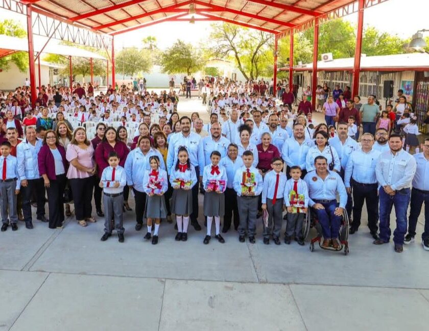 Reynosa, Tam.- El Presidente Municipal Carlos Peña Ortiz, acompañó al Secretario General del Gobierno del Estado, Héctor Joel Villegas González, representante del Gobernador Constitucional de Tamaulipas, Doctor Américo Villarreal Anaya, en la Ceremonia de Inicio de Ciclo Escolar 2025-2026 y Entrega de Libros de Texto Gratuitos y Paquetes de Útiles Escolares en Educación Básica en la escuela primaria Lauro Aguirre…