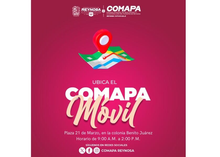 Reynosa, Tam.- Por instrucciones del Presidente Municipal, Carlos Peña Ortiz, y con el objetivo de acercar los servicios a la ciudadanía, la Comisión Municipal de Agua Potable y Alcantarillado de Reynosa llevará el COMAPA Móvil a los vecinos de la colonia Benito Juárez, para facilitar el acceso a trámites y servicios relacionados con el organismo. A partir del martes 1…