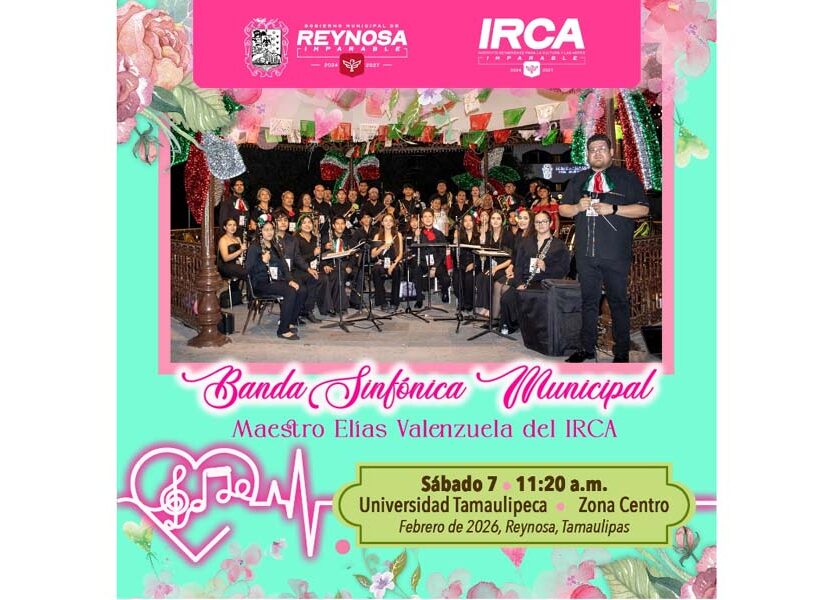 Reynosa, Tam.- El Gobierno de Reynosa, que preside el Alcalde Carlos Peña Ortiz, invita a la ciudadanía a la presentación de la Banda Sinfónica Municipal “Maestro Elías Valenzuela” del Instituto Reynosense para la Cultura y las Artes. Bajo la dirección del Maestro Enrique Martínez Ruiz, la agrupación se presentará este sábado 7 de febrero a las 11:20 horas en las…