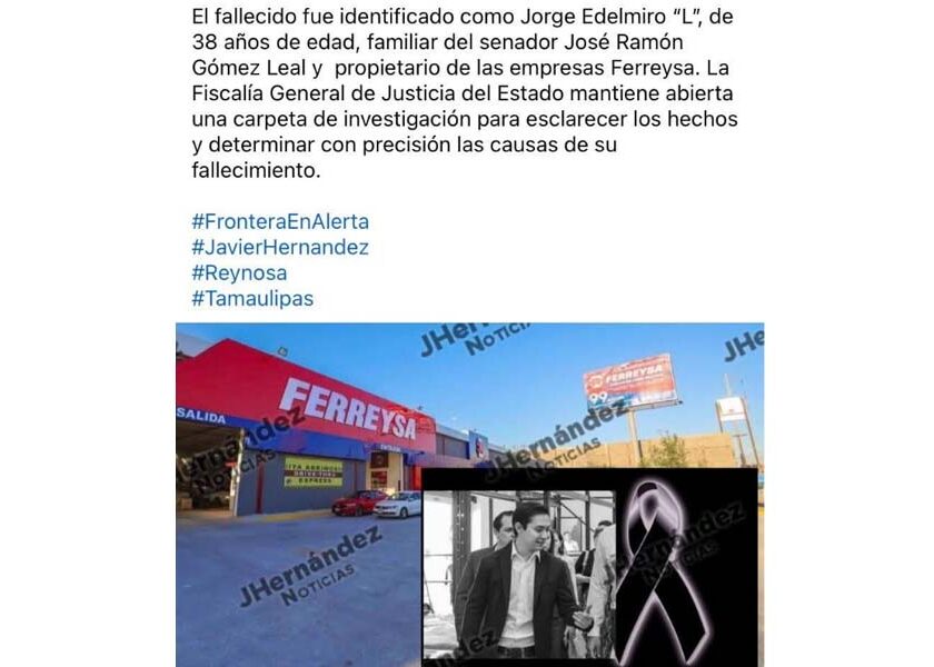 Circula esta información en redes, es Imprecisa, el fallecido si es el que mencionan, pero no es el dueño de Ferreysa, el dueño es su cuñado. En paz descansa Jorge Edelmiro L.