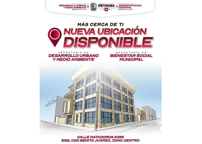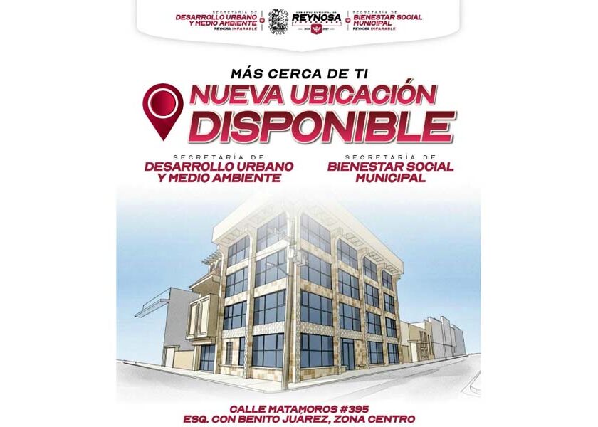 Reynos, Tam.- La Secretaría de Desarrollo Urbano y Medio Ambiente del Gobierno de Reynosa invita a los ciudadanos que requieren de hacer trámites de su competencia a su nueva ubicación, en calle Juárez esquina con Matamoros en la Zona Centro. La dependencia municipal se encuentra junto a la Secretaría de Bienestar Social e incluye a la Dirección de Control y…