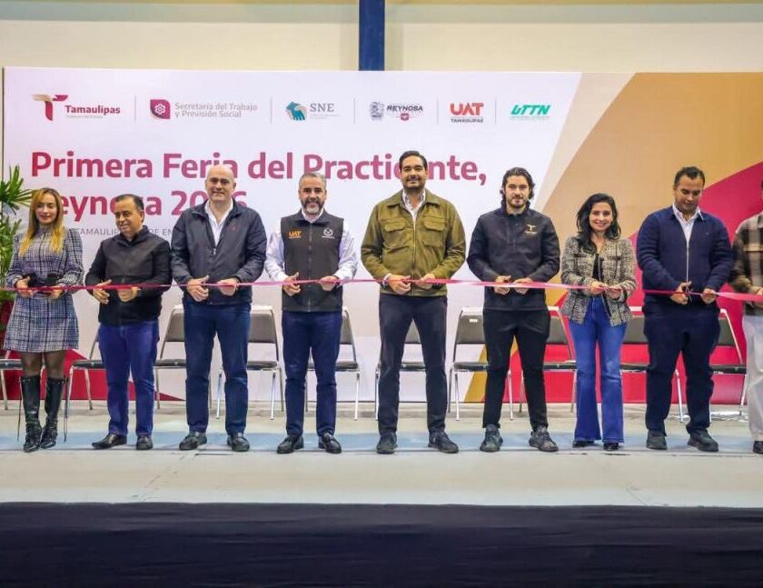Reynosa, Tam.- Al inaugurar el Presidente Municipal Carlos Peña Ortiz, con el Secretario de Trabajo y Previsión Social de Tamaulipas, Luis Gerardo Illoldi Reyes, la “Primera Feria del Practicante Reynosa 2026”, invitó a los jóvenes estudiantes a seguir preparándose, “nosotros queremos que sean muy exitosos porque hoy México tiene muchas carencias, pero si a ustedes les va bien a toda…