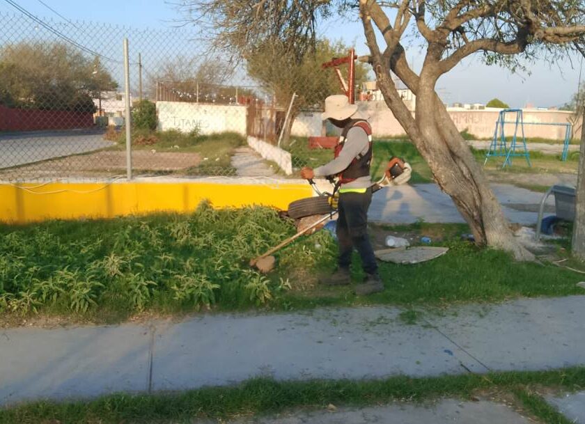 Reynosa, Tam.- Esta mañana de lunes 5 de enero, cuadrillas de Servicios Públicos, del Gobierno que preside Carlos Peña Ortiz, llevan a cabo actividades de limpieza y mantenimiento en vías e instalaciones públicas, con la finalidad de conservar un entorno apto para las familias reynosenses. Corte de maleza en campo de futbol en la colonia Narciso Mendoza. Limpieza, chapoleo, papeleo,…