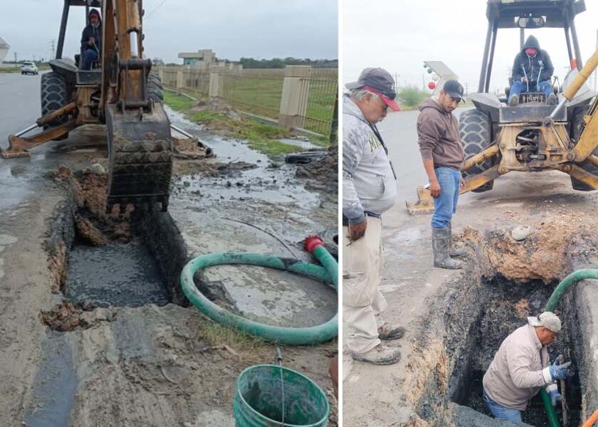 Atiende COMAPA fuga de agua residual en la Carretera Reynosa–Río Bravo