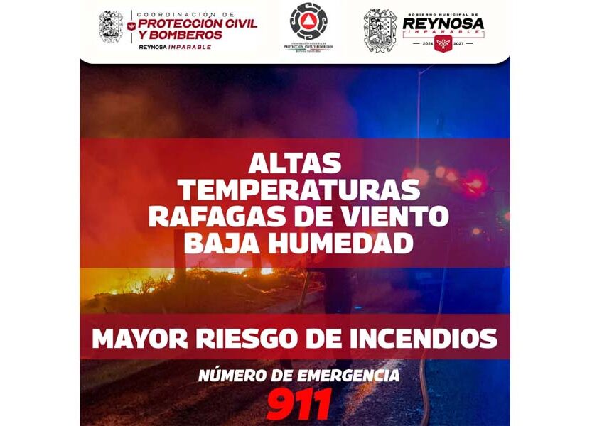 Reynosa, Tam.- El Presidente Municipal Carlos Peña Ortiz hace un llamado a la conciencia ciudadana, para que eviten encender fuego con cualquier motivo, así como tirar colillas de cigarro sin apagar, para evitar incendios que debido a las condiciones climáticas pueden ser difíciles de controlar. La baja humedad ambiental, altas temperaturas y ráfagas de viento, son un factor que favorece…