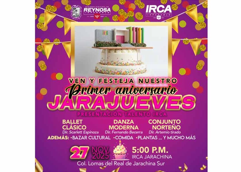 Reynosa, Tam.- El Gobierno de Reynosa, que preside el Alcalde Carlos Peña Ortiz, invita al público a festejar el primer aniversario del Jarajueves, una iniciativa cultural que ha dado vida a las tardes del último jueves del mes en el Instituto Reynosense para la Cultura y las Artes sede Jarachina. La cita es este jueves 27 de noviembre a las…