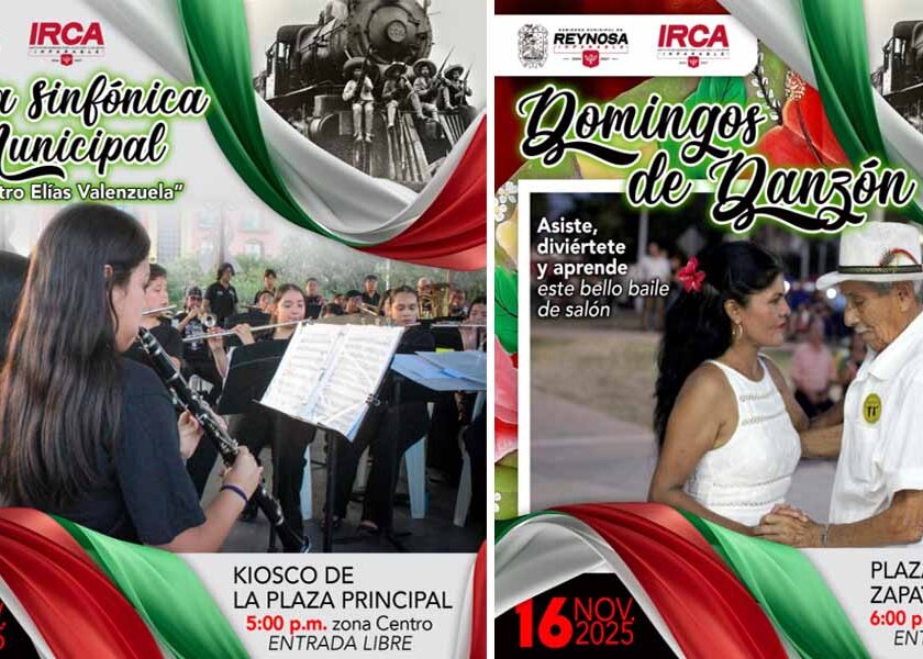 Reynosa, Tam.- Siguiendo las instrucciones del Alcalde Carlos Peña Ortiz, el Instituto Reynosense para la Cultura y las Artes invita a las familias reynosenses a disfrutar de las actividades culturales gratuitas programadas para este domingo 16 de noviembre. A las 5:00 P. M., en el kiosco de la plaza principal Miguel Hidalgo en la zona Centro, se presentará la Banda…