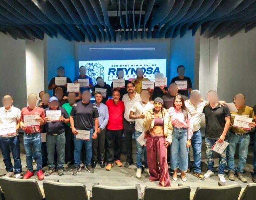 Reynosa, Tam.- El Presidente Municipal Carlos Peña Ortiz, acompañado por la campeona mundial de box Mariana “La Barbie” Juárez, entregó reconocimientos a una nueva generación de egresados del programa social Tazo Dorado, que impulsa una nueva vida con más oportunidades para quienes sufre de problemas de adicción. “Los queremos fuertes, que sean inmunes a las drogas, que Vivan una vida…