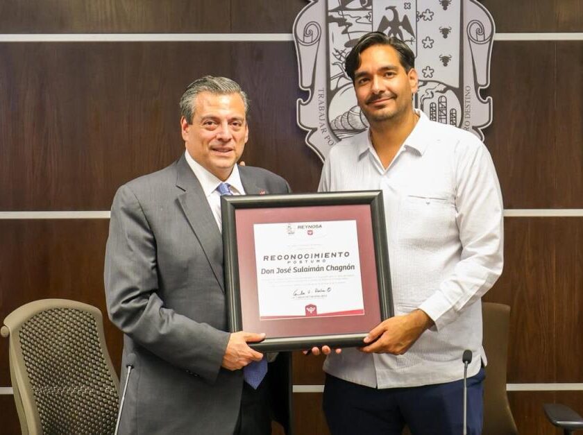 Entregó Carlos Peña Ortiz reconocimiento póstumo a José Sulaimán Chagnón en manos de Mauricio Sulaimán