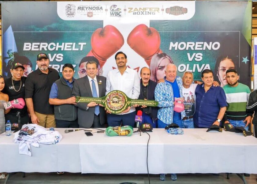 Reynosa, Tam.- El Alcalde Carlos Peña Ortiz y el Presidente del WBC, Consejo Mundial de Boxeo, Mauricio Sulaimán, presentaron el “Cinturón Reynosa” la fajilla especial que disputarán en esta ciudad los peleadores Miguel Berchelt y Edixon Pérez el próximo sábado 11 de octubre en el Gimnasio de la UAT. “Agradezco a mi amigo, un gran mexicano, Presidente Municipal, Carlos, no…