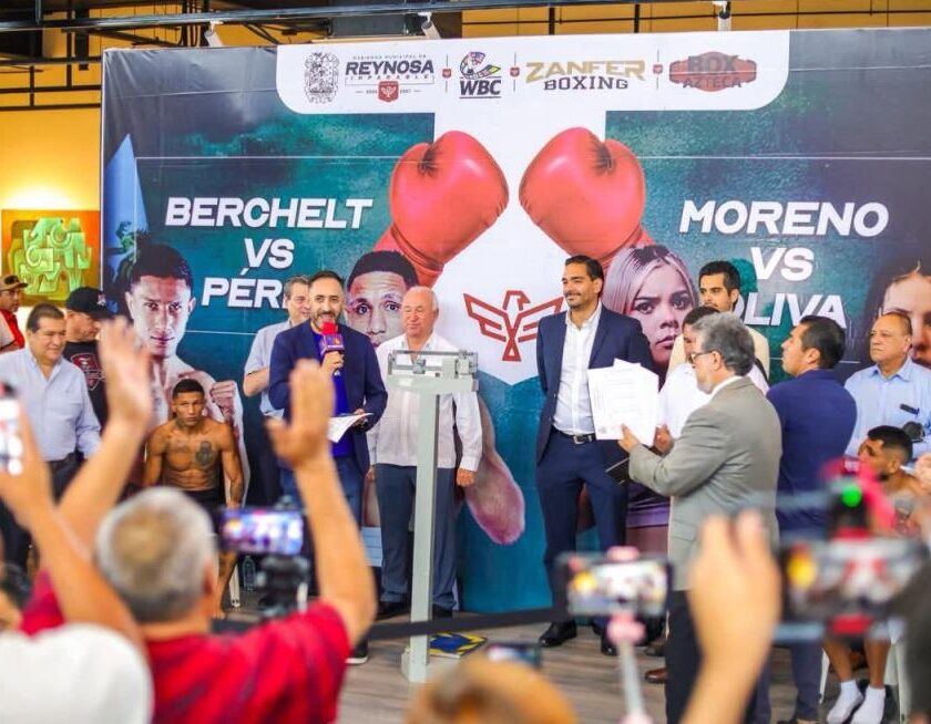 Reynosa, Tam.- El Alcalde Carlos Peña Ortiz y el Presidente del Consejo Mundial de Boxeo, Mauricio Sulaimán, encabezaron la Ceremonia de Pesaje de los peleadores por el “Cinturón Reynosa” del WBC, Miguel “El Alacrán” Berchelt y Edixon “El Cabezón” Pérez, un duro y decisivo encuentro que se llevará a cabo este sábado 11 de octubre en el Gimnasio de la…