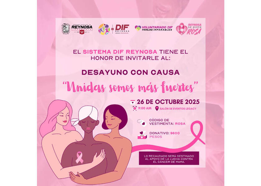 Invita DIF-Reynosa y Voluntariado al Desayuno con Causa “Unidas Somos Más Fuertes” en apoyo a la lucha contra el cáncer de mama