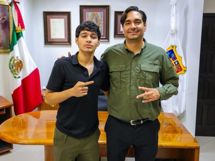 Reynosa, Tam.- El Presidente Municipal de Reynosa, Carlos Peña Ortiz, felicitó al joven boxeador Gerardo “El Bendito” Estopellán por su magnífico triunfo en su debut en la Arena Coliseo de Reynosa. “El Bendito” visitó al Alcalde antes de su pelea y prometió dar su mejor esfuerzo para llevar en alto el nombre de la ciudad. “Gerardo nos llenó de orgullo…
