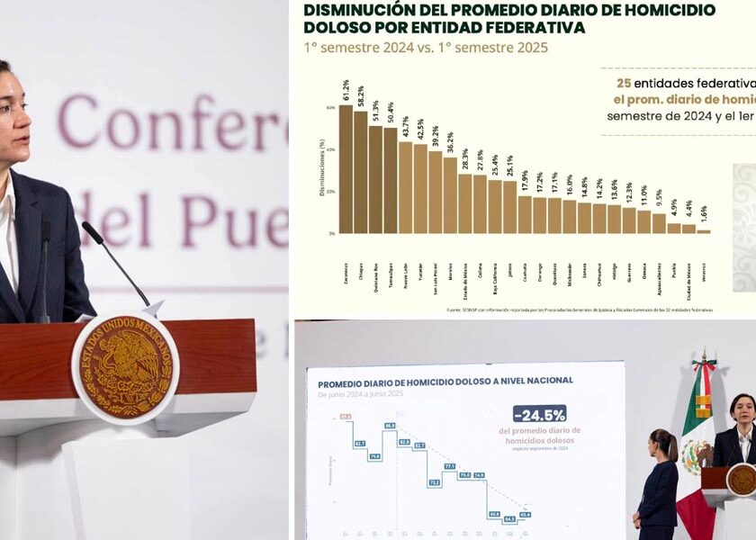 Ciudad Victoria, Tamaulipas.- Tamaulipas es una de las cuatro entidades del país en donde se registró la mayor reducción del promedio diario de homicidios dolosos, con una disminución del 50.4 por ciento, al comparar el primer semestre de 2025 con el mismo periodo de 2024 y, además, durante junio del presente año, sólo se registraron 15 casos de dicho delito,…