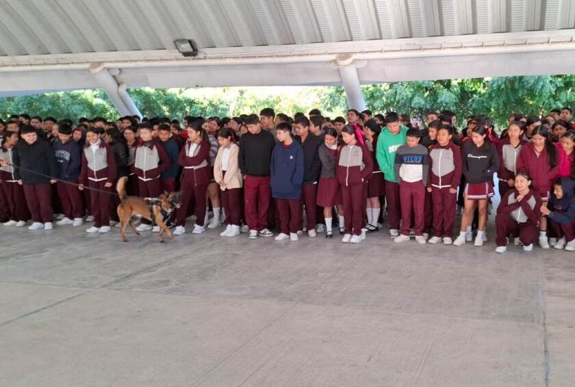 Ciudad Victoria, Tamaulipas.- El Agrupamiento Canino de la Guardia Estatal realizó una jornada de seguridad escolar en la Escuela Secundaria Técnica número 90 “Eugenio Hernández Balboa”, ubicada en la colonia La Moderna de Ciudad Victoria. Durante la jornada se contó con la intervención del binomio canino “Max”, especializado en detección de narcóticos e intervención policial, como parte del programa “Para…