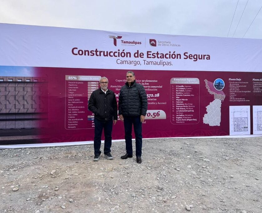 Camargo, Tamaulipas.- Como parte del compromiso institucional de fortalecer la infraestructura en materia de seguridad pública, el secretario de Seguridad Pública de Tamaulipas, Carlos Arturo Pancardo Escudero, supervisó la construcción de las Estaciones Seguras que se desarrollan en la zona fronteriza del estado. Acompañado por el secretario de Obras Públicas de Tamaulipas, Pedro Cepeda Anaya, el titular de la Secretaría…