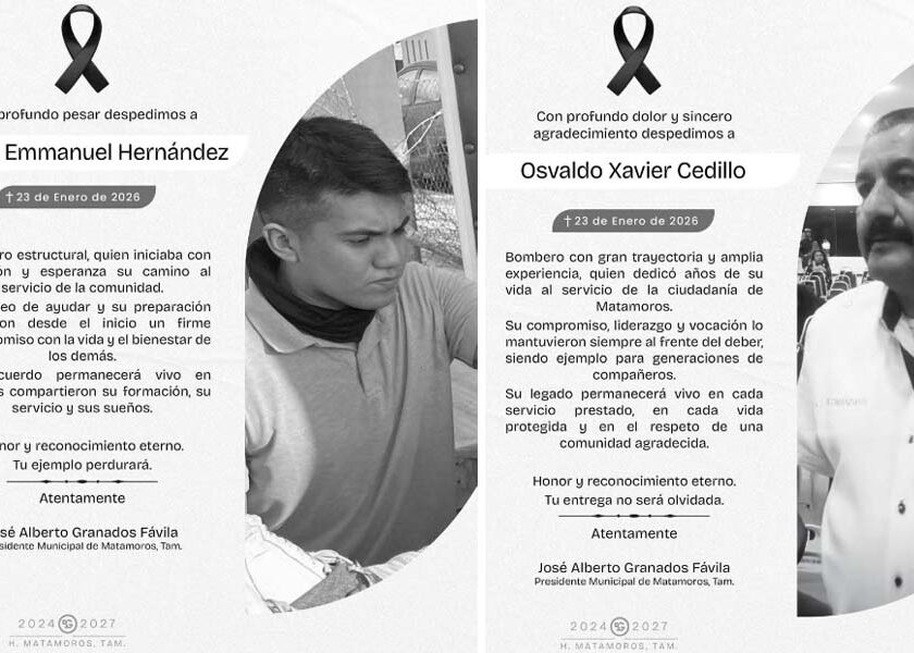 Por Julio Manuel Loya Guzmán.Cd. Victoria, Tamaulipas.- El alcalde de Matamoros, Alberto Granados, lamentó el fallecimiento de tres elementos del Cuerpo de Bomberos que perdieron la vida en cumplimiento de su deber, tras quedar atrapados durante el combate a un incendio registrado en la maquiladora Spellman. A través de sus redes sociales, el mandatario municipal expresó su pesar por la…