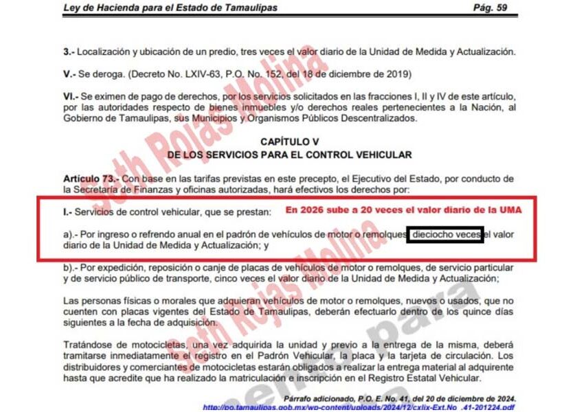 SUBEN DERECHOS VEHICULARES Y LICENCIAS EN TAMAULIPAS PARA 2026
