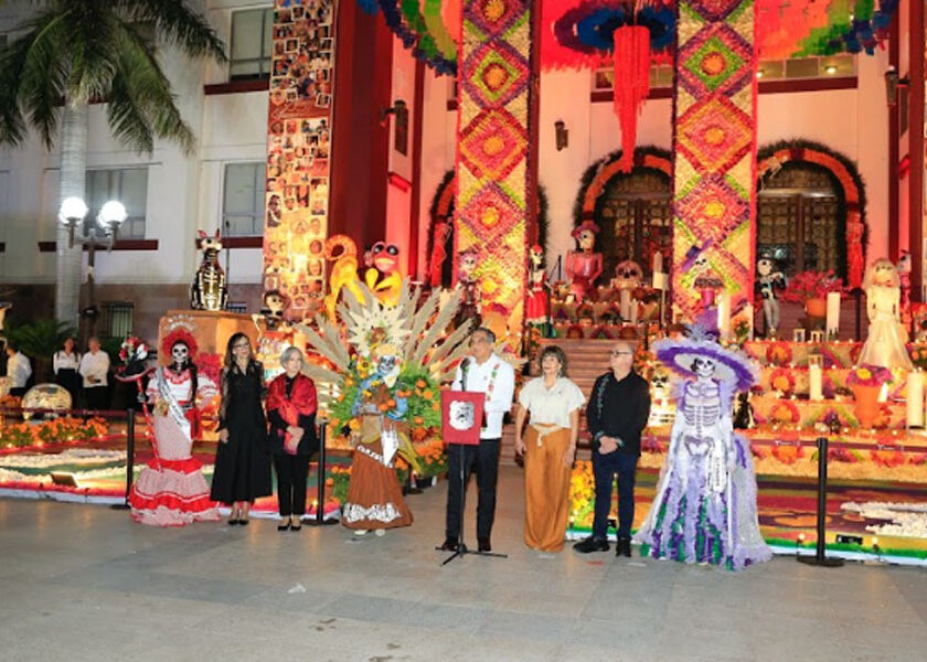 Ciudad Victoria, Tamaulipas.- En un ambiente impregnado por el aroma de la flor de cempasúchil, el pan de muerto y las luces de las velas, el gobernador Américo Villarreal Anaya y la presidenta del Sistema DIF Estatal, María de Villarreal presidieron la premiación del concurso estatal de catrinas y catrines “Almas Tamaulipecas” y la muestra del altar monumental del Día…
