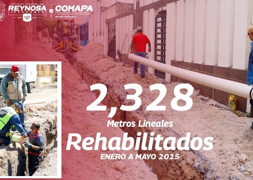 Reynosa, Tam.- Atendiendo las indicaciones del Presidente Municipal, Carlos Peña Ortiz, y con el compromiso de brindar mejores servicios a las familias reynosenses, la Comisión Municipal de Agua Potable y Alcantarillado de Reynosa ha rehabilitado, de enero a la fecha, un total de 2 mil 328 metros lineales de red sanitaria en diversos sectores de la ciudad. Estas acciones forman…